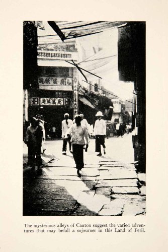 This is an original 1931 black and white halftone print of a street in the city of Guangzhou (Canton or Kwangchow) which is the capital of the province of Guangdong in China. This city is situated along the Pearl River in southern China. Please note that there is printing on the reverse.