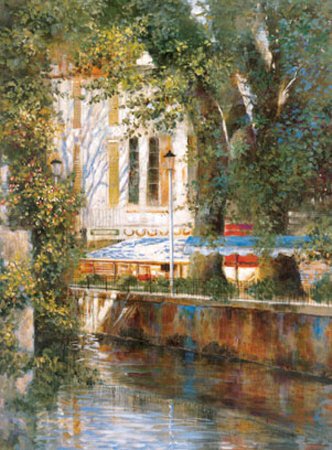 Awnings by the Canal Art Poster Print by Michael Longo, 28x37 Feature